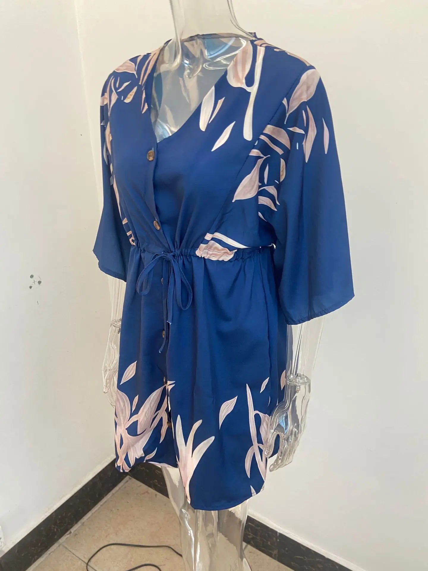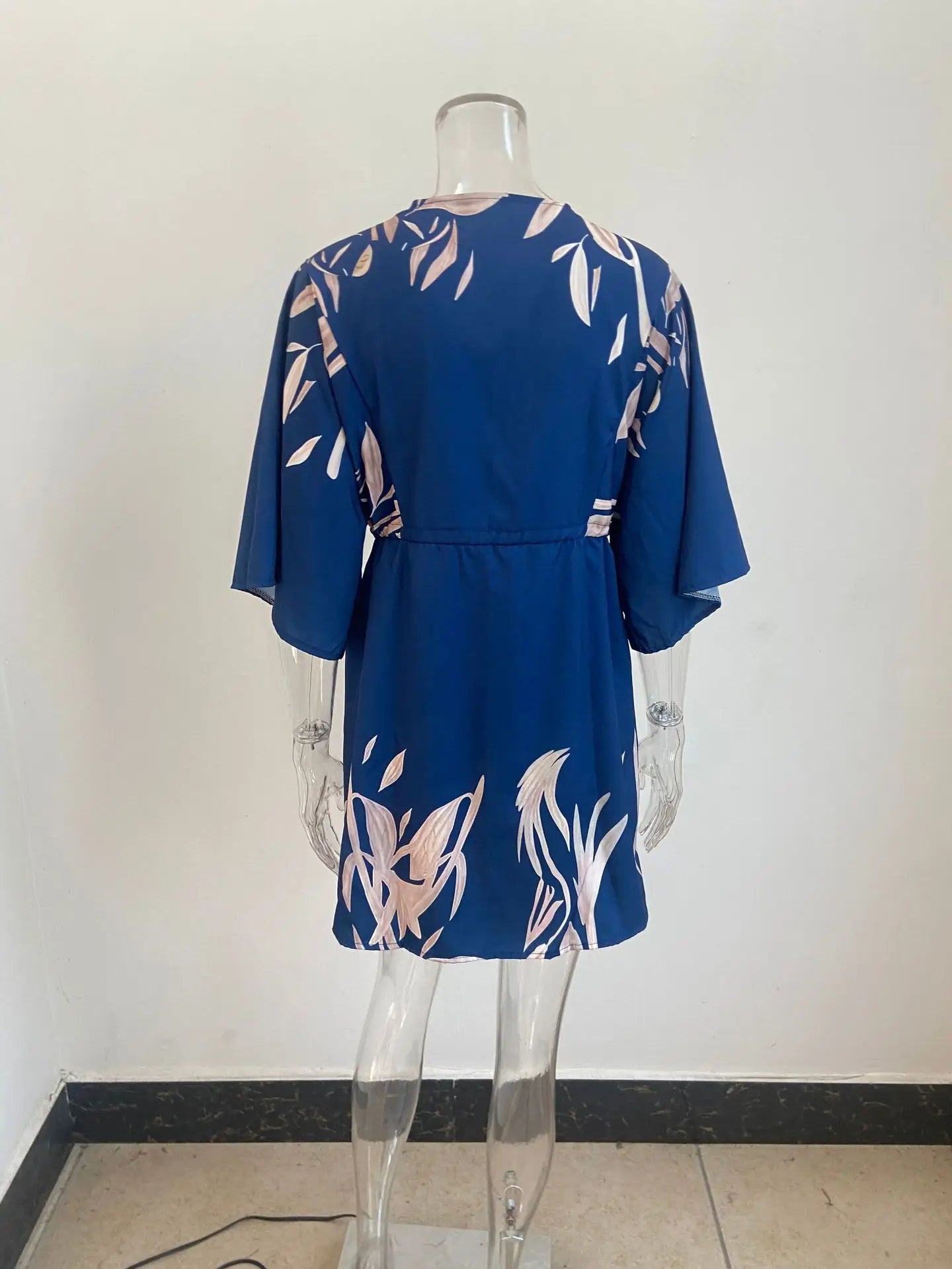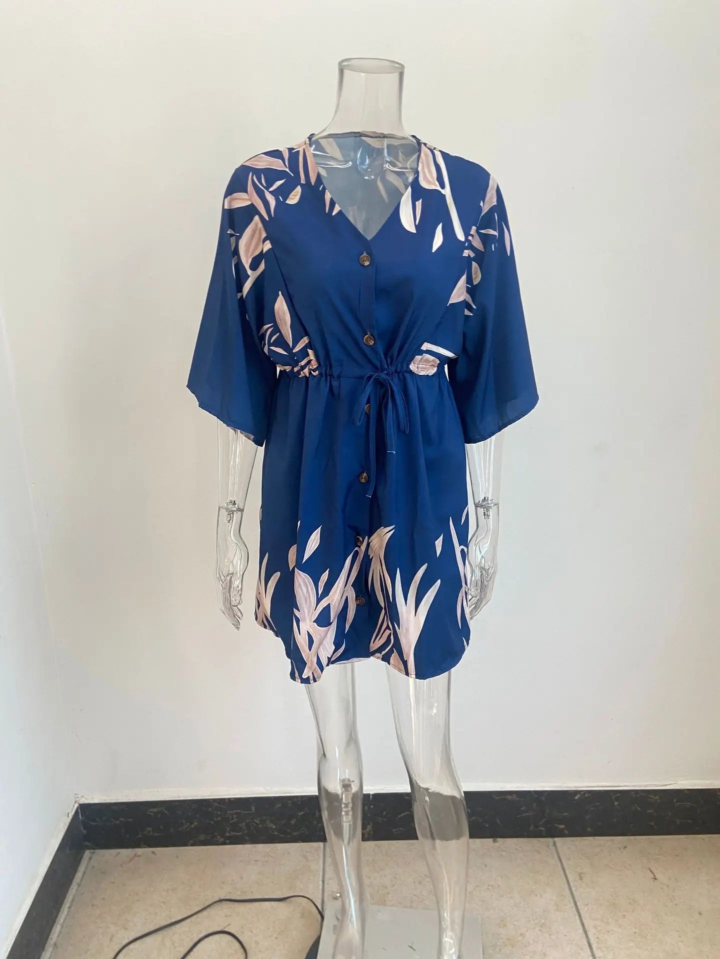 Summer New Product Fashion Print V-Neck Lace up Casual Vacation Dress