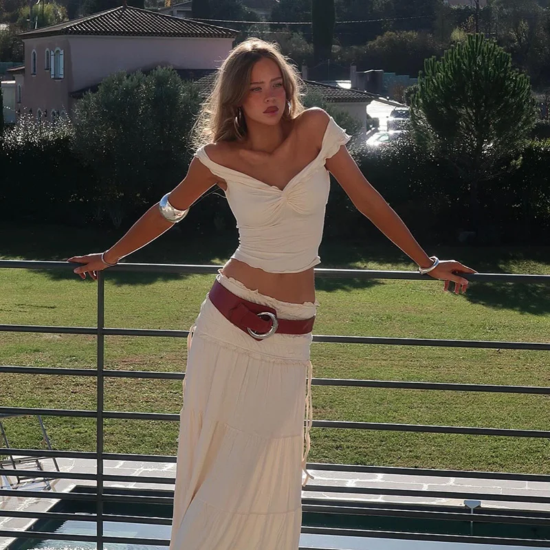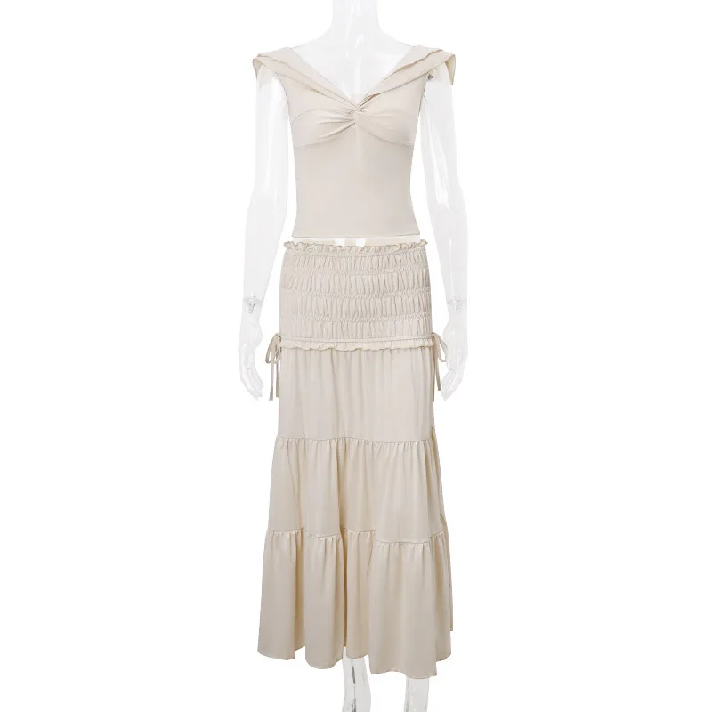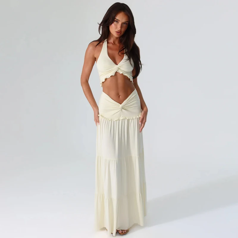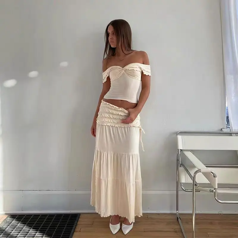 DGLUKE Fashion Summer Outfits For Women Crop Top And Long Skirt 2 Piece Set Women Beach Holiday Outfit 2025 New In Matching Sets