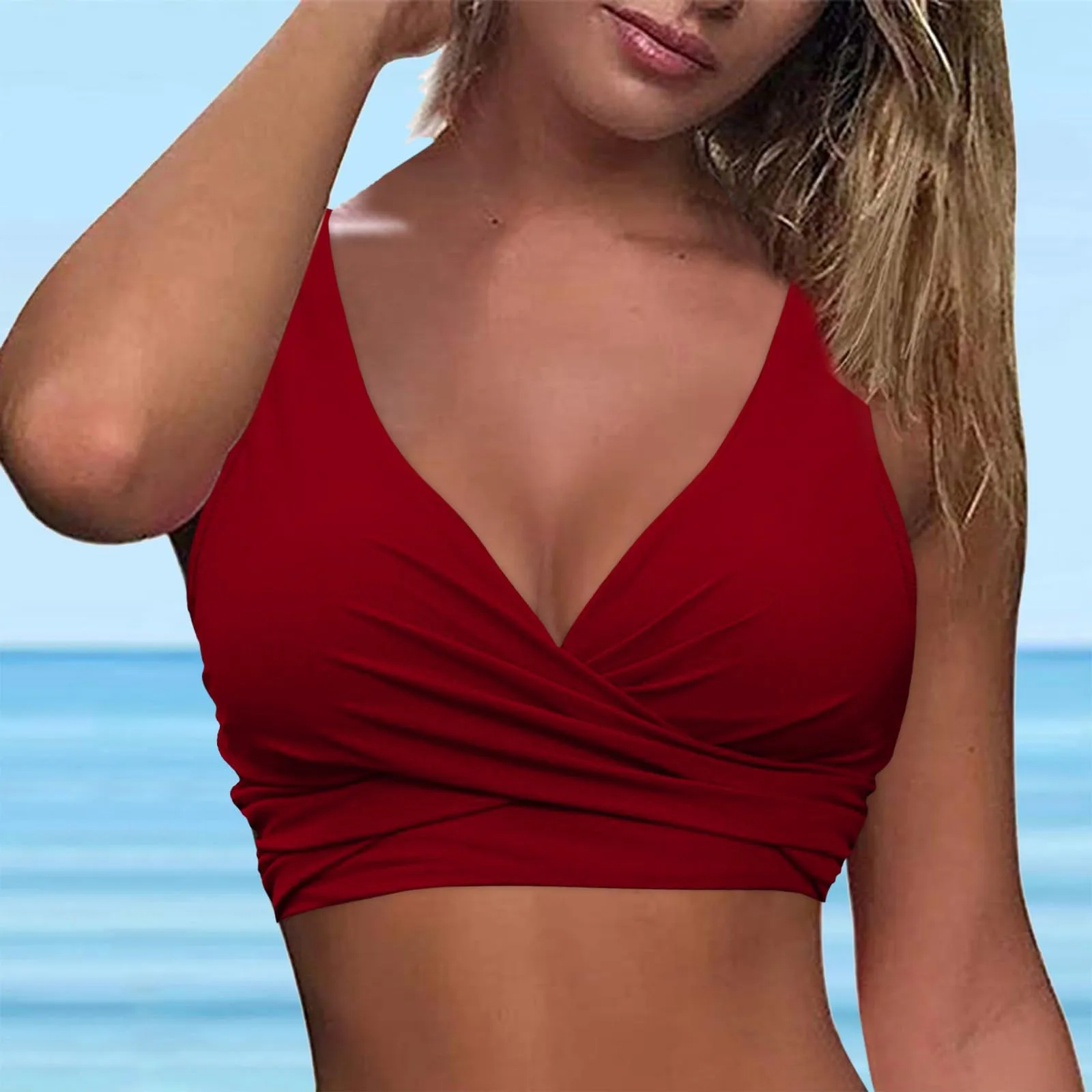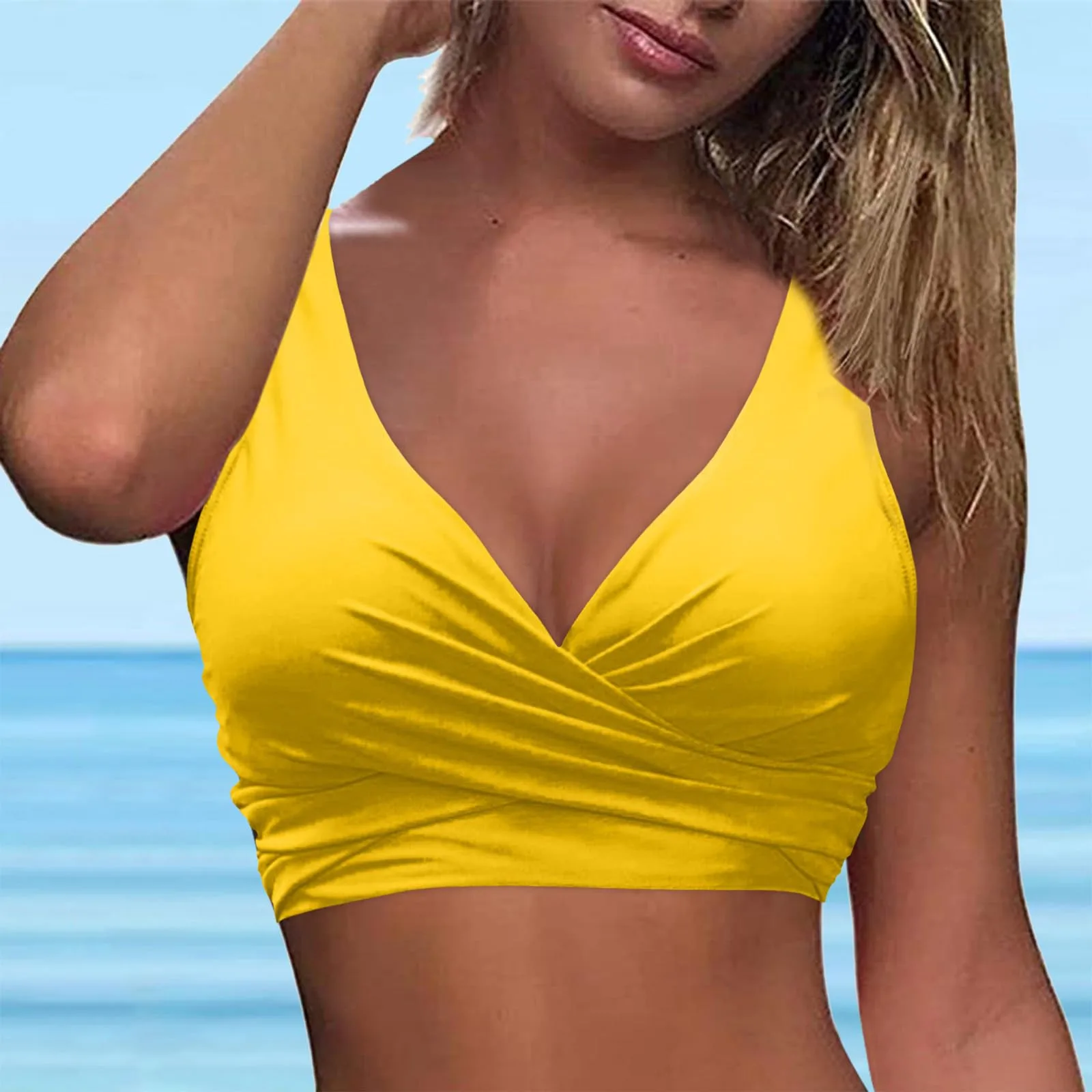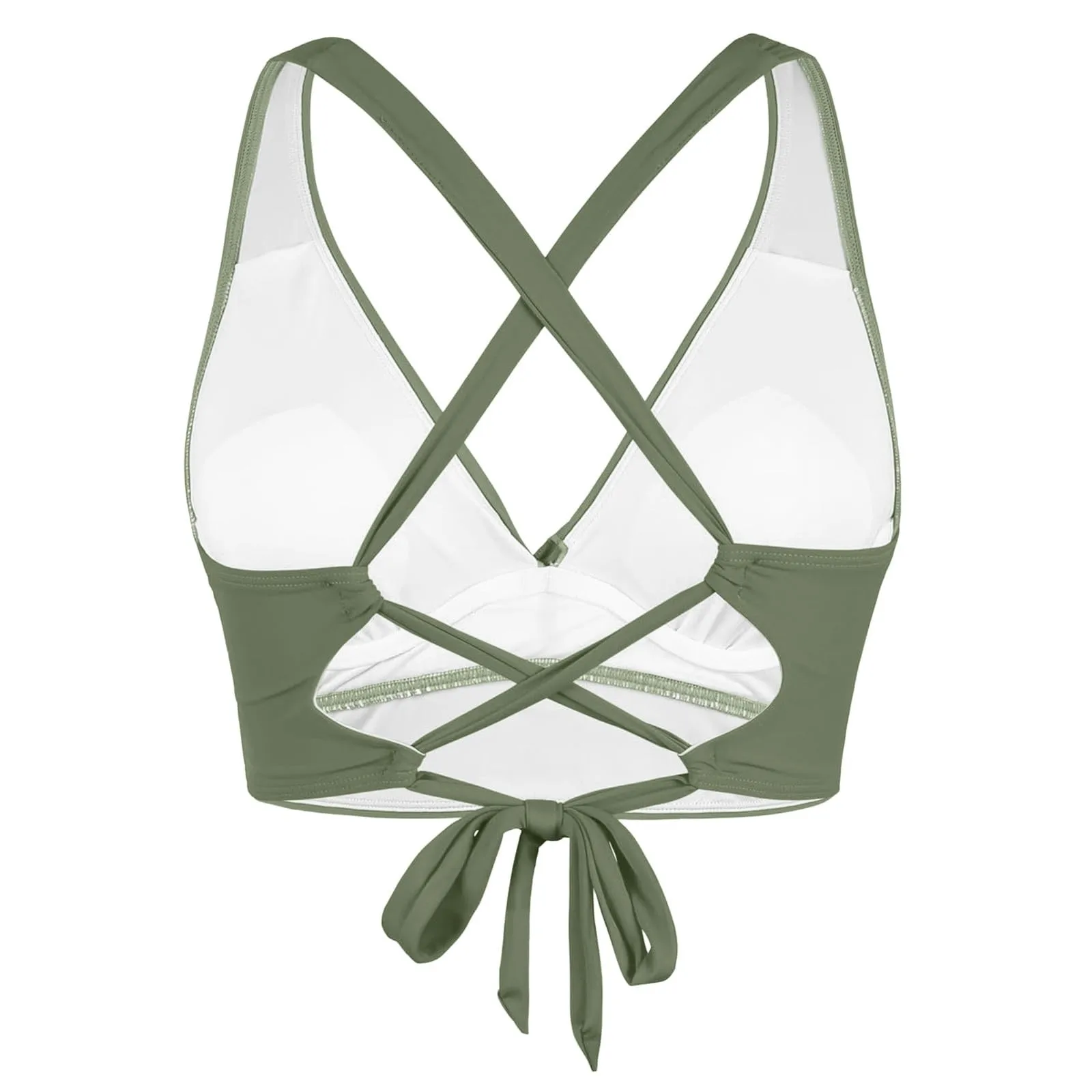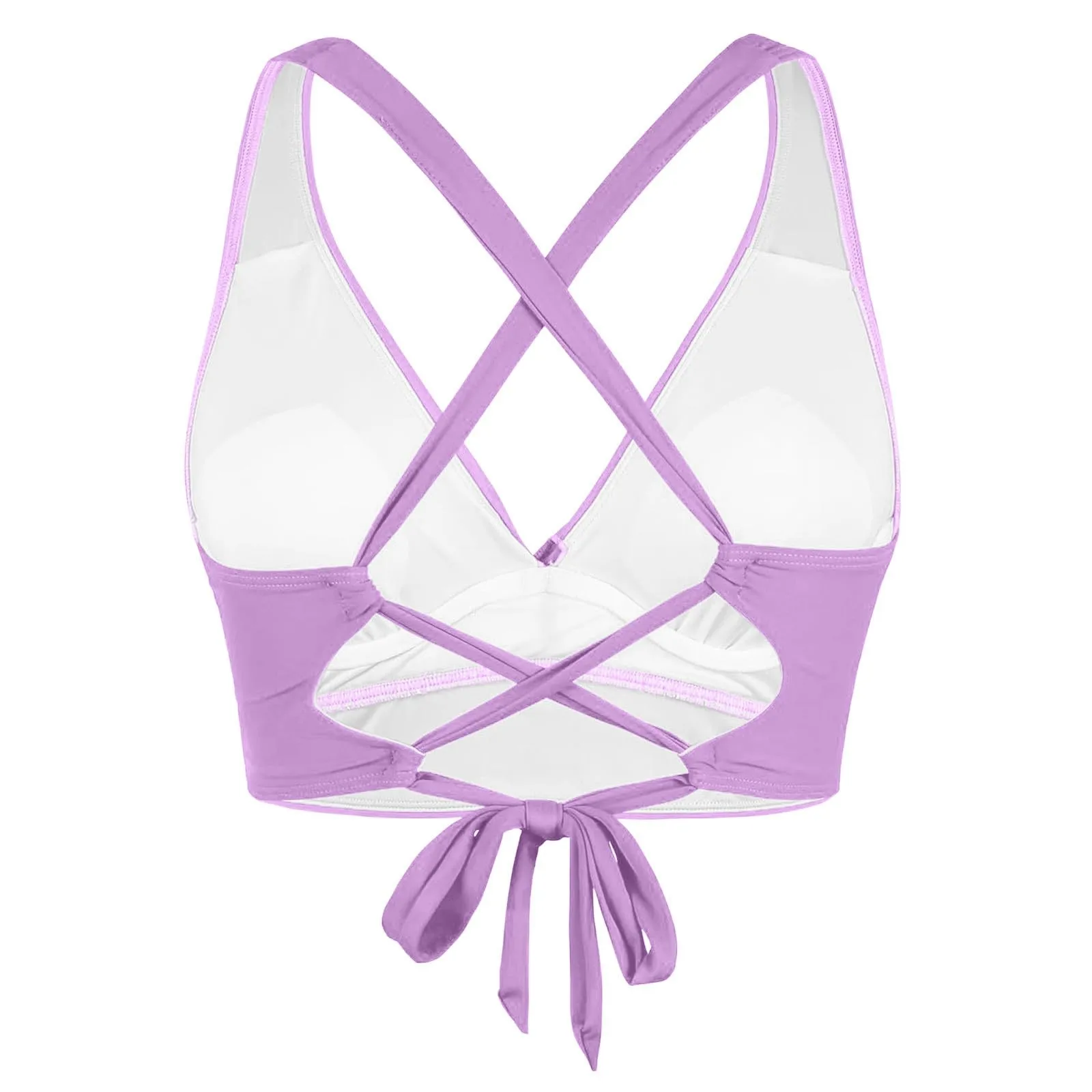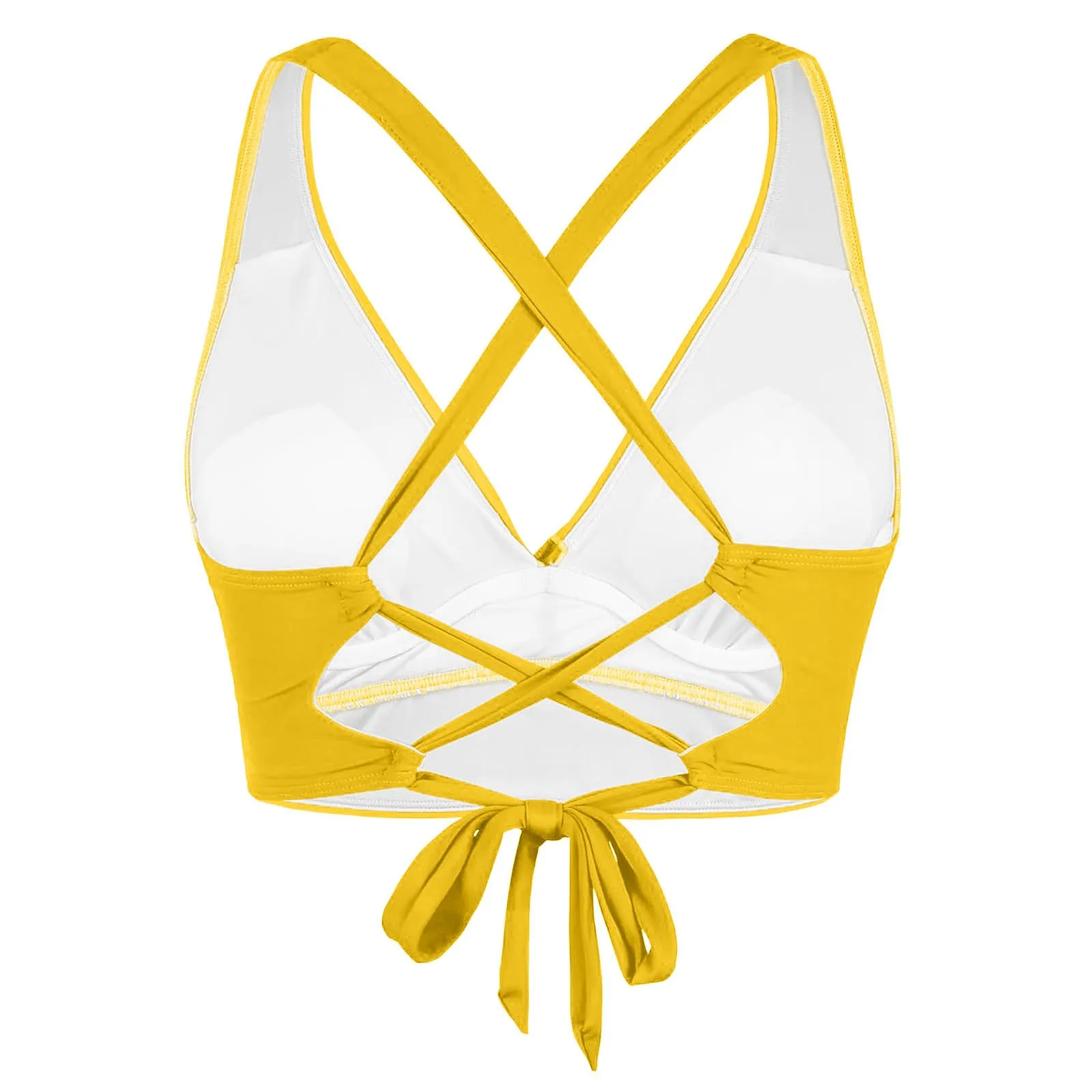 Women's Sexy Bikini Fashion High Waist Solid Color Cross Tie Bra Pad No Steel Support Swimsuit