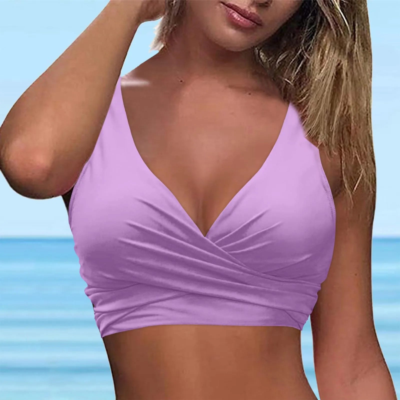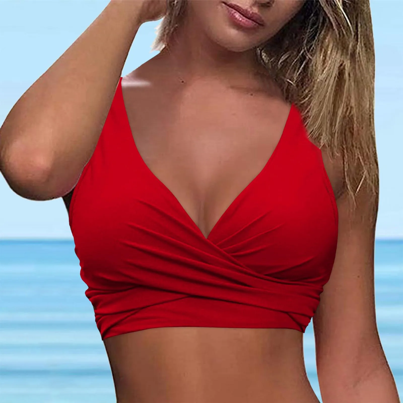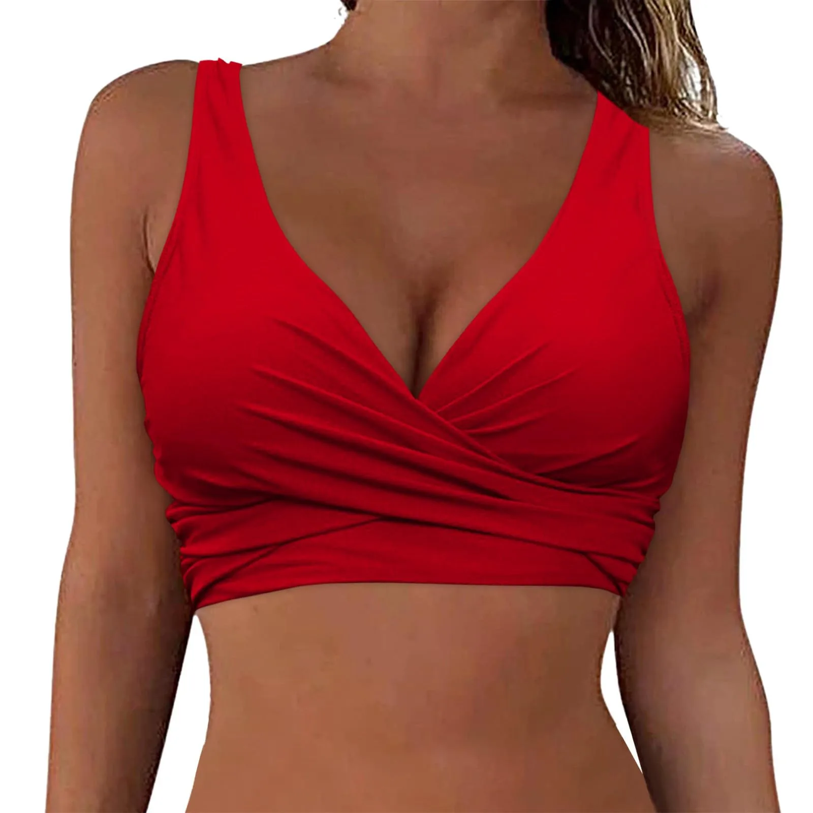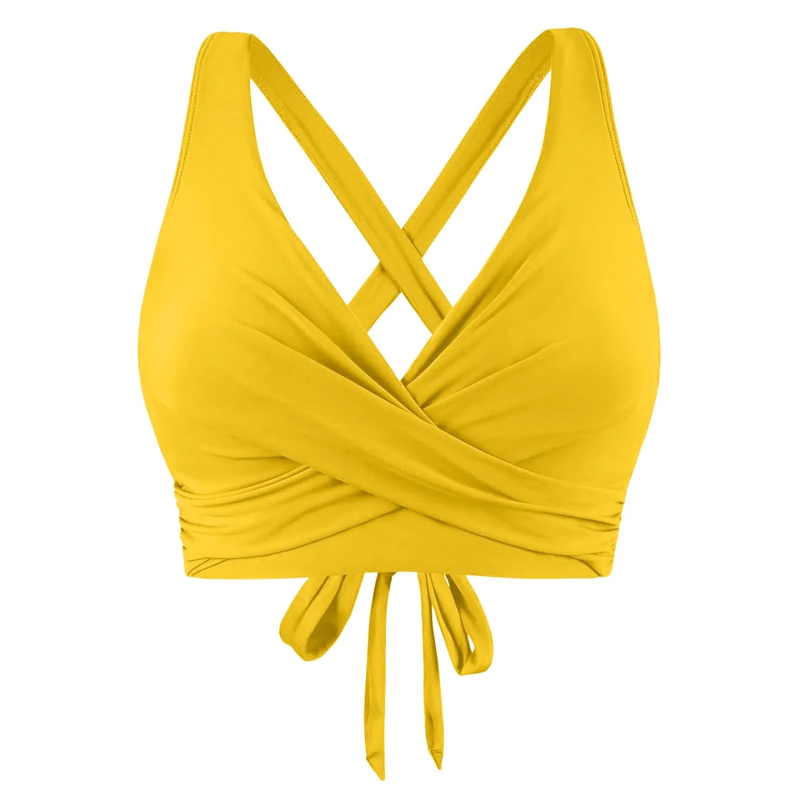 Women's Sexy Bikini Fashion High Waist Solid Color Cross Tie Bra Pad No Steel Support Swimsuit