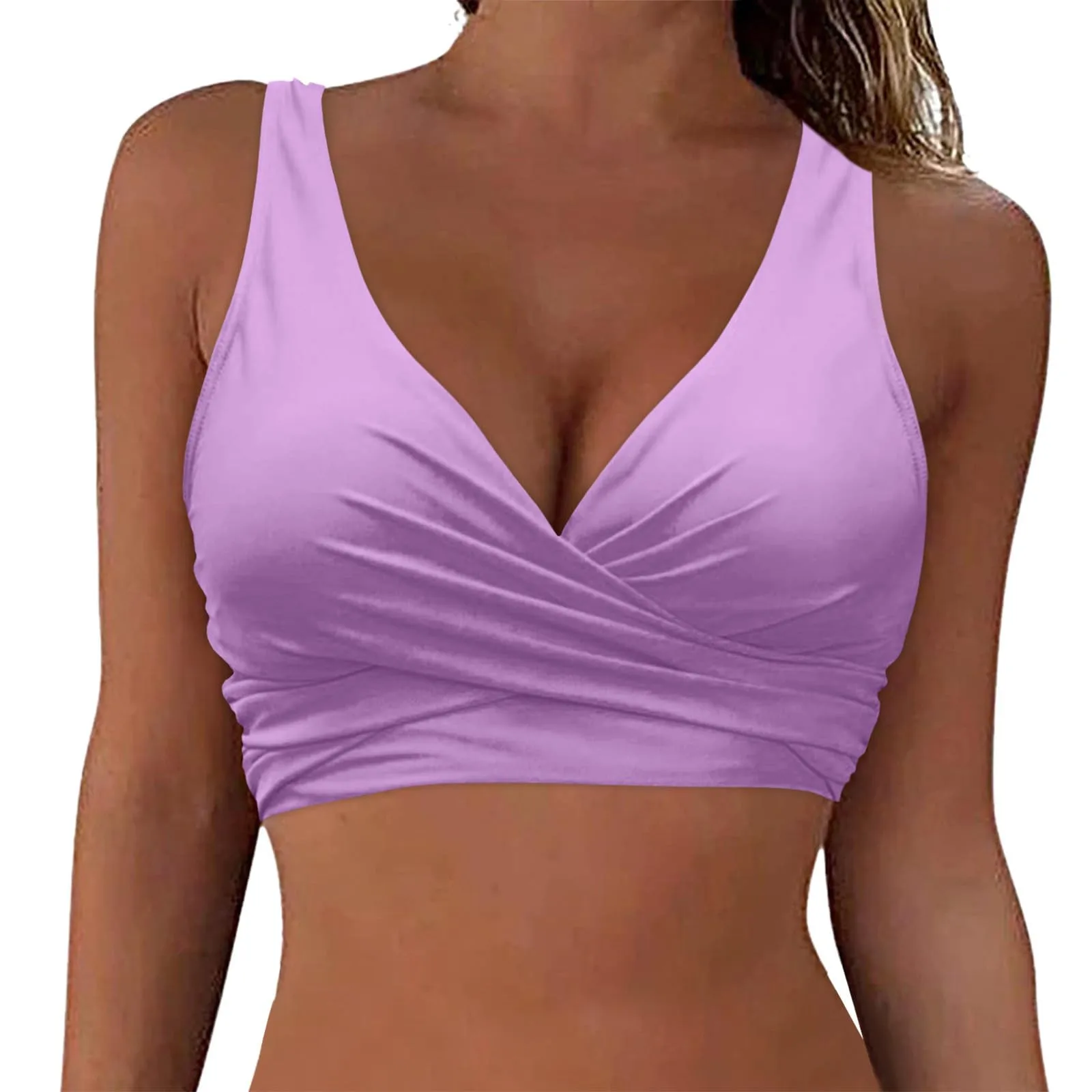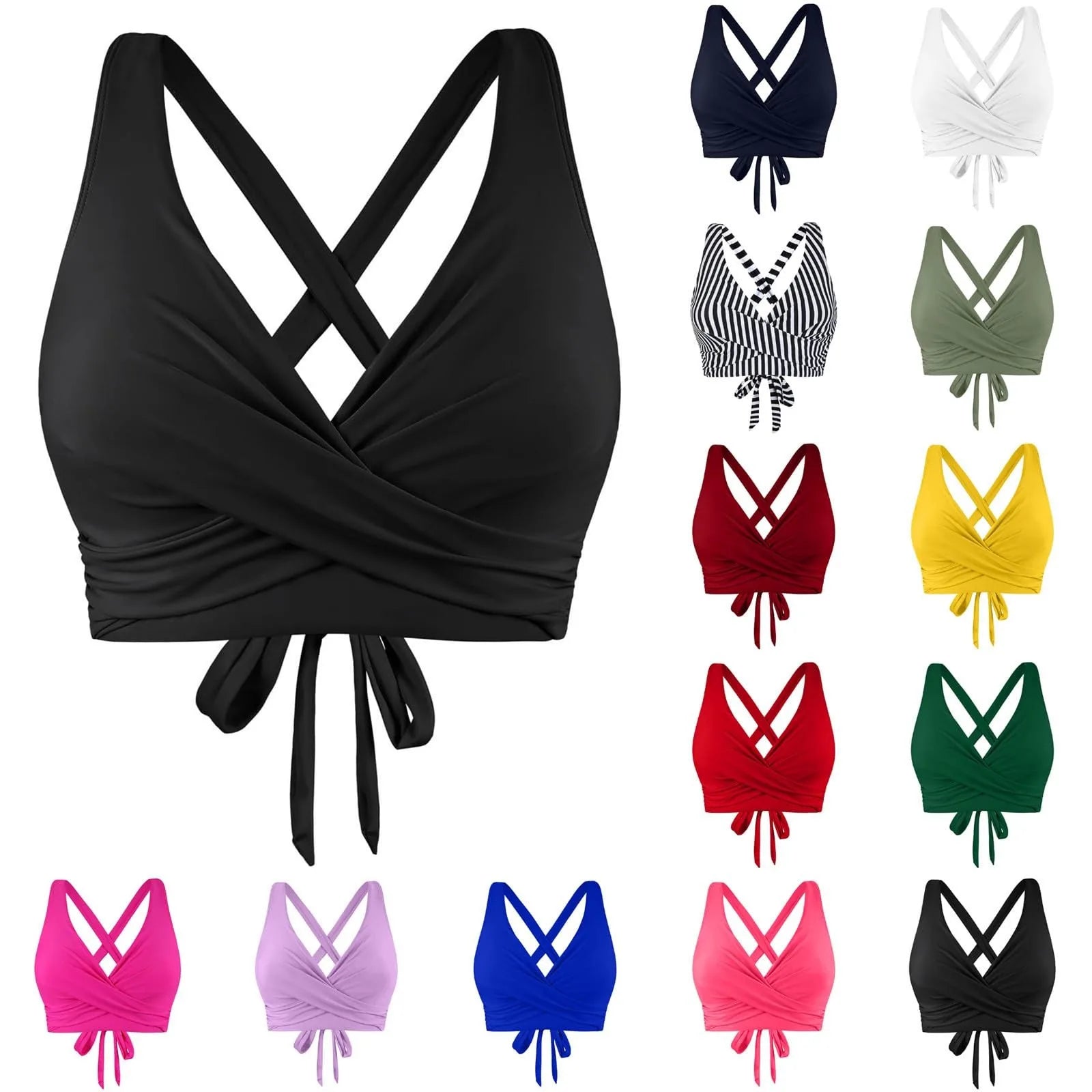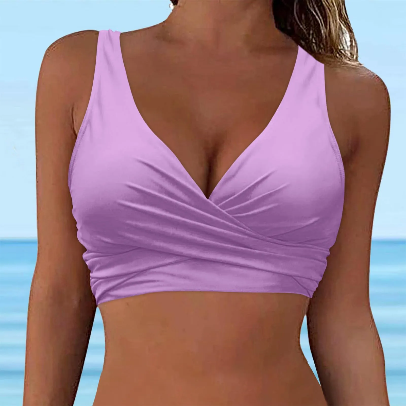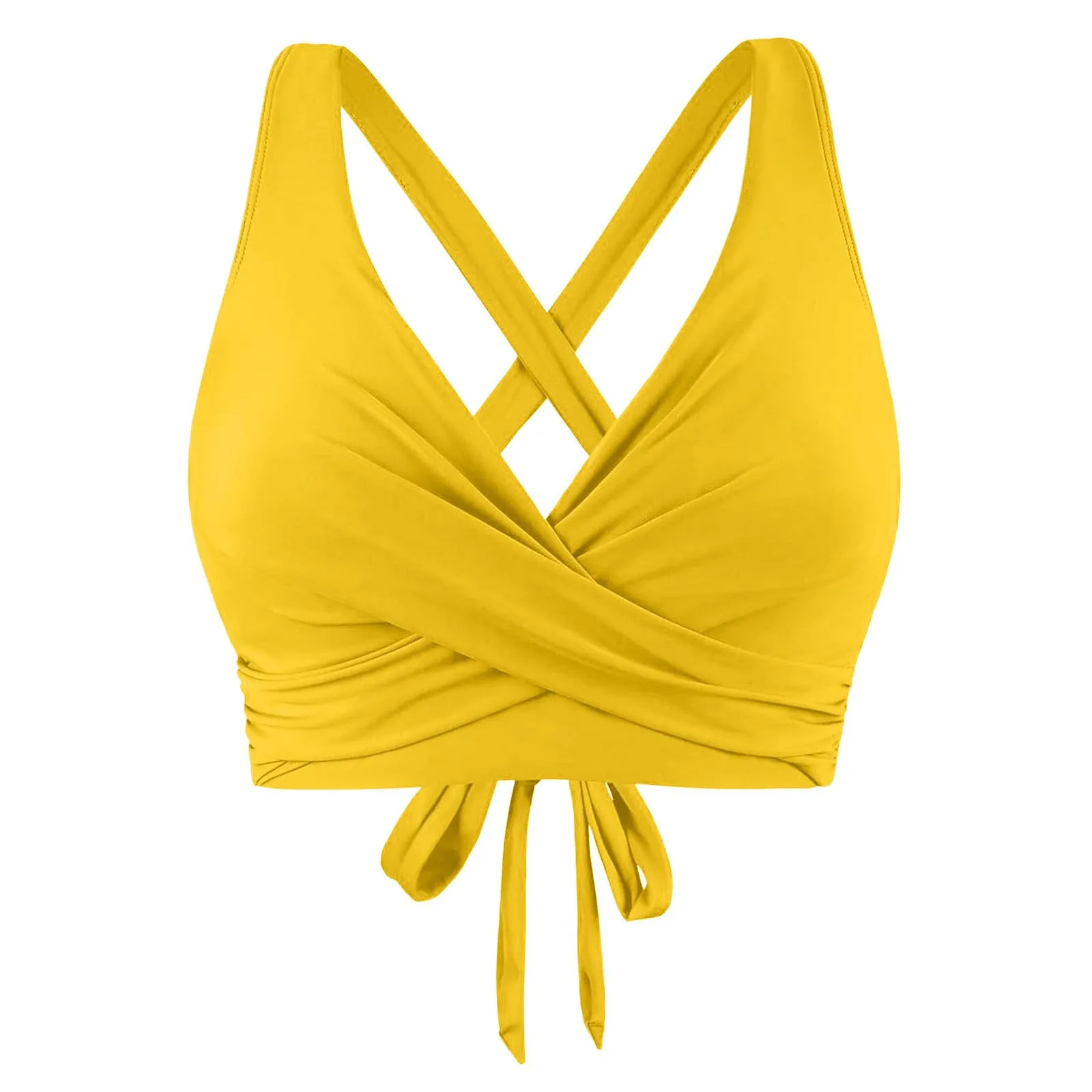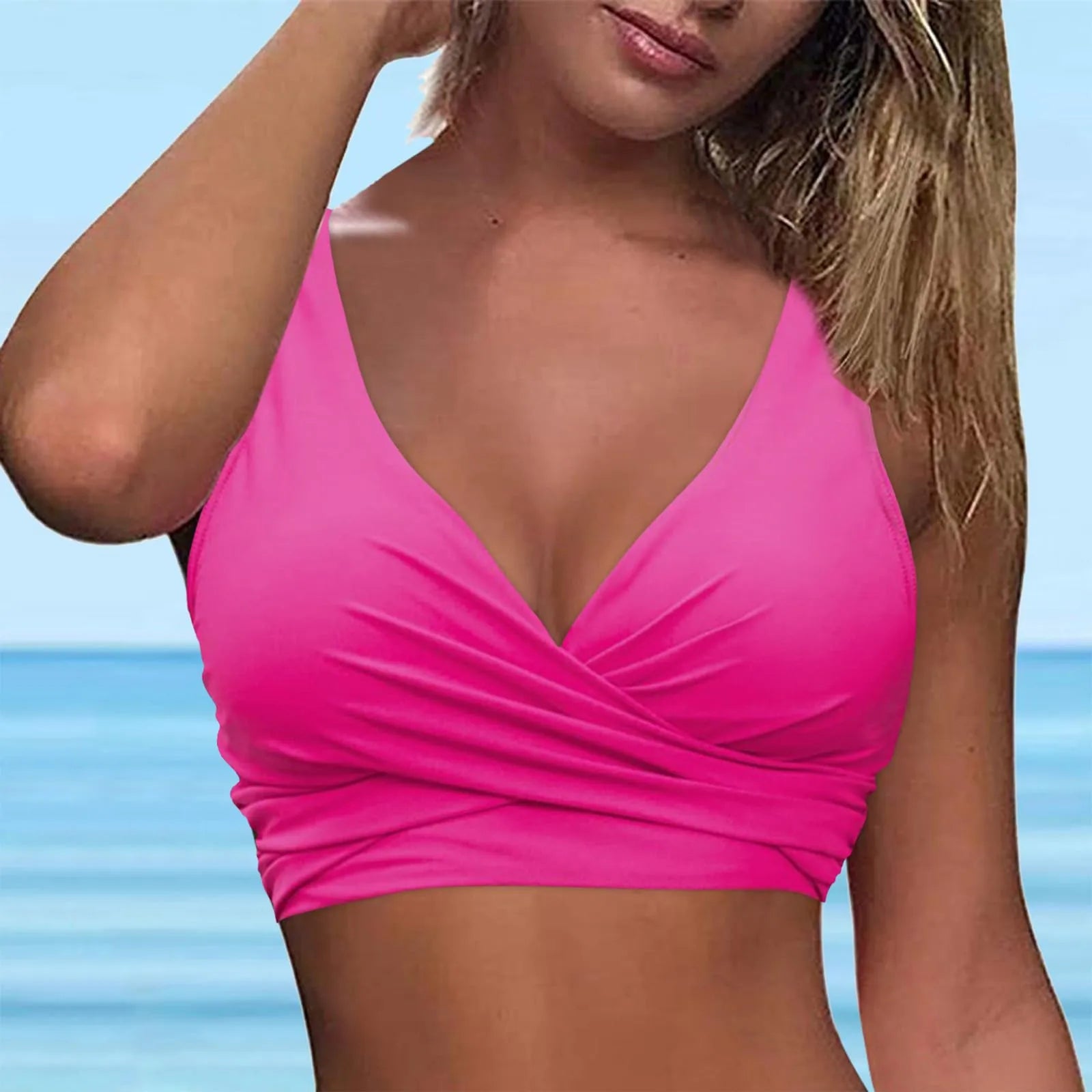 Women's Sexy Bikini Fashion High Waist Solid Color Cross Tie Bra Pad No Steel Support Swimsuit
