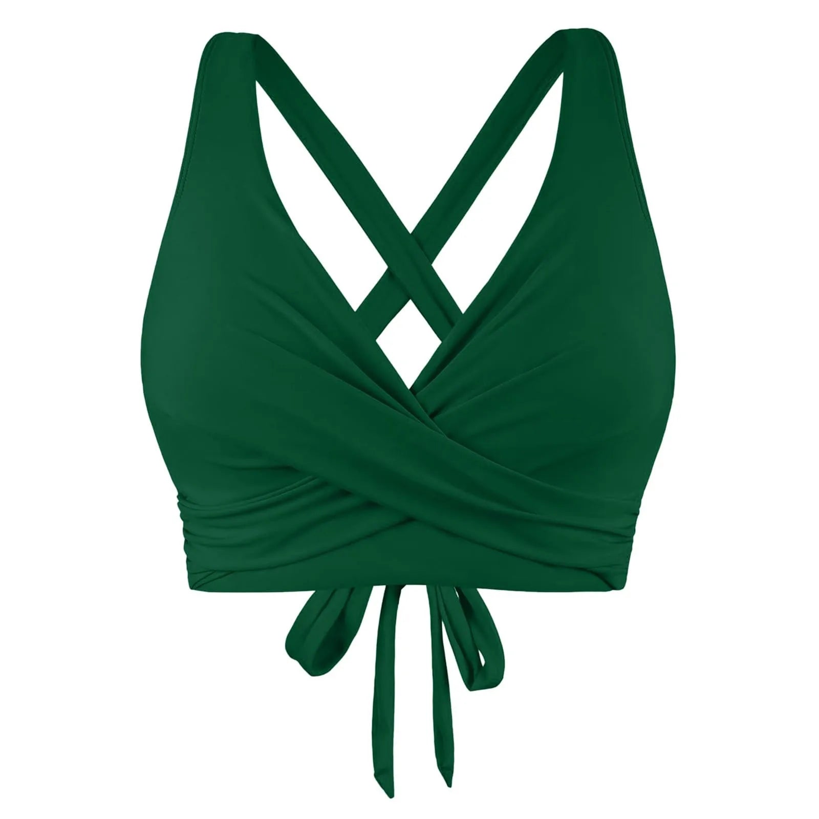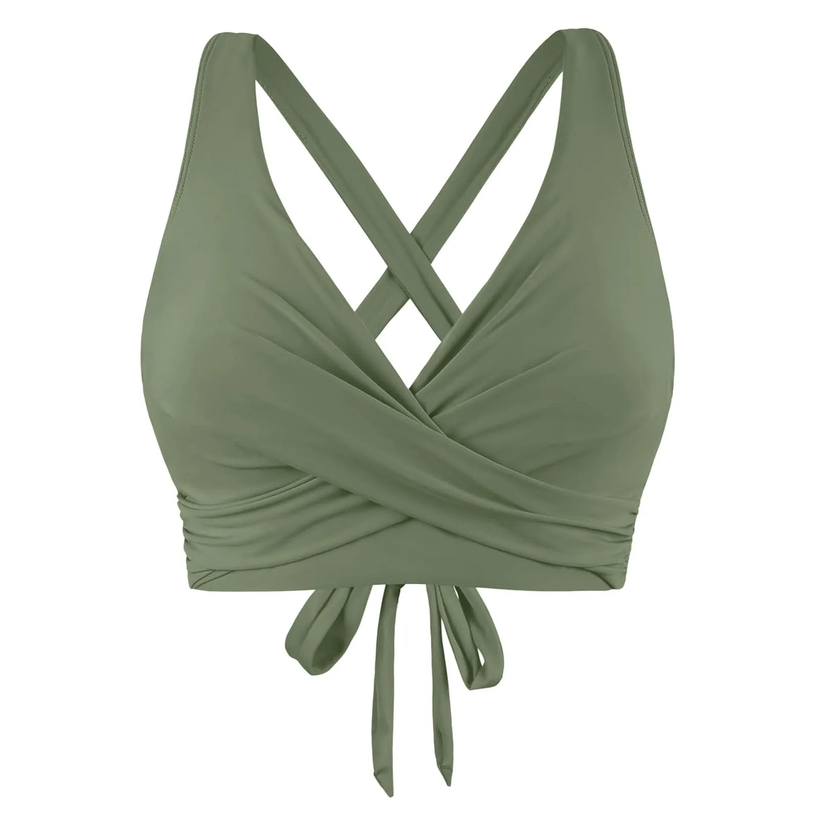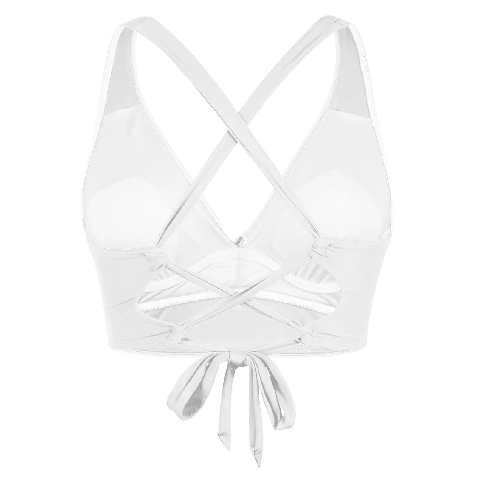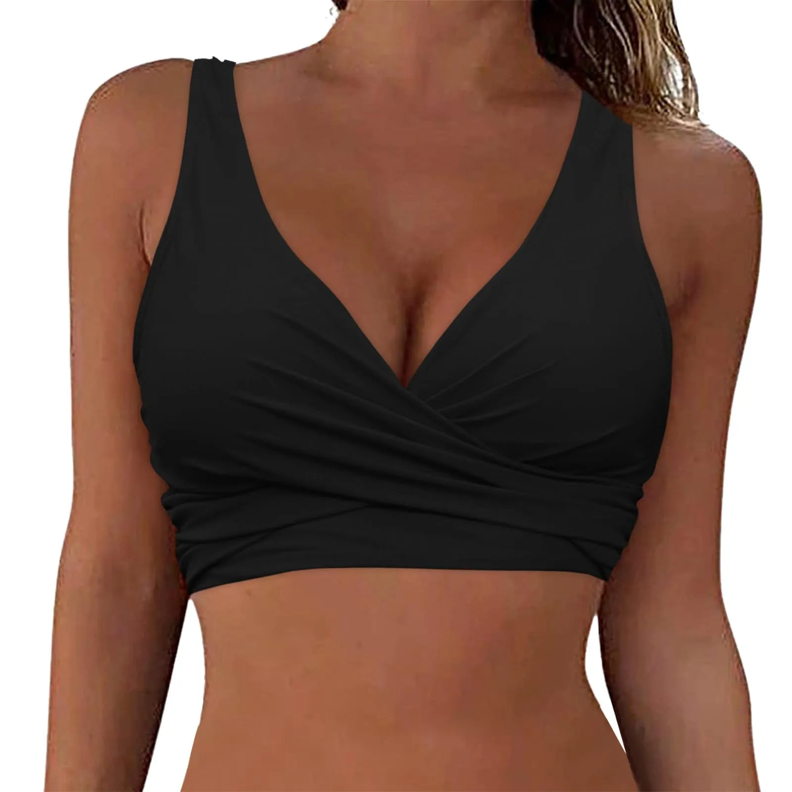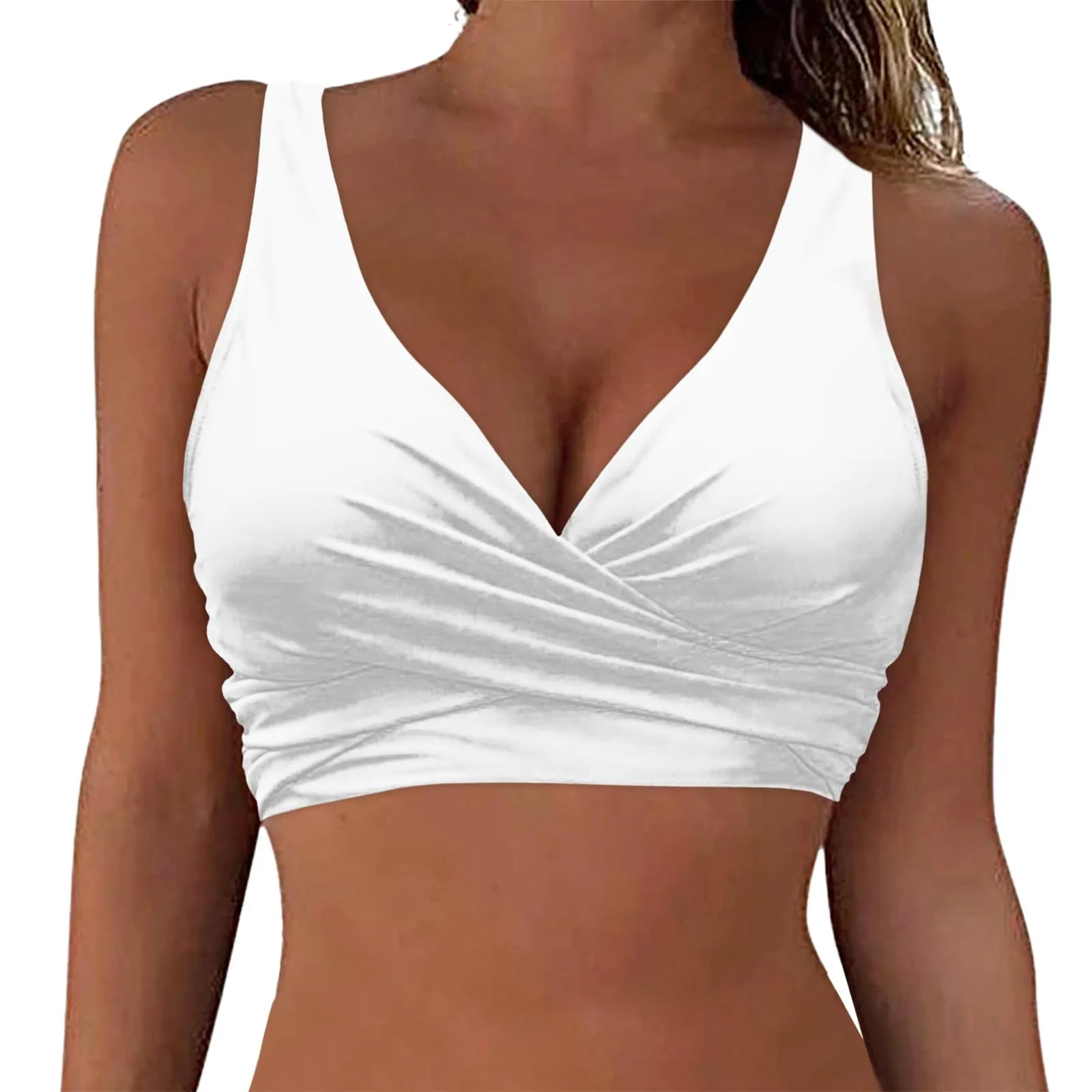 Women's Sexy Bikini Fashion High Waist Solid Color Cross Tie Bra Pad No Steel Support Swimsuit