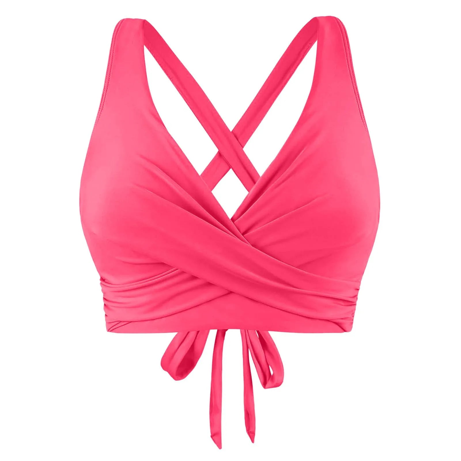 Girls Swimsuits with Padding Women Lace Up Swimwear Tops Underwire Full Coverage Bikini Top Push Up Ladies Swimsuits with Shorts